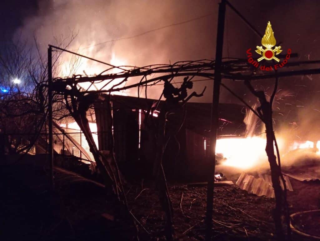 Incendio in un capannone agricolo: il fuoco raggiunge una bombola di GPL, esplosione devastante