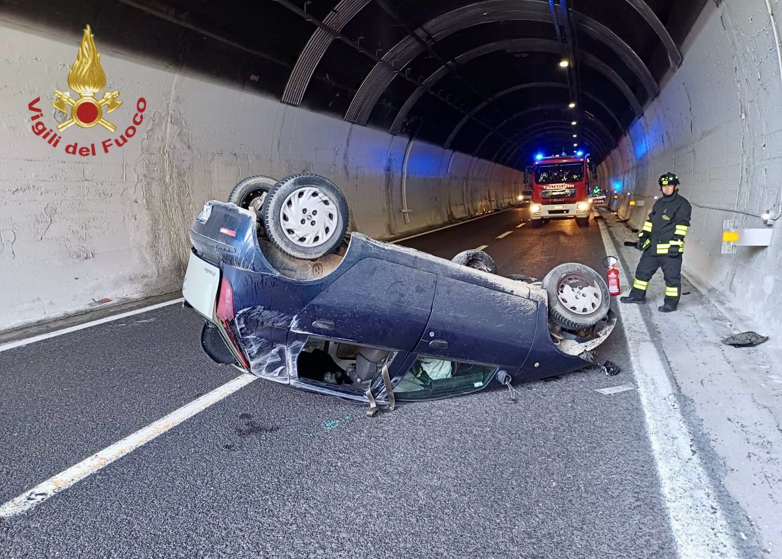 Perde il controllo dell'auto e si ribalta in galleria: ferito il conducente