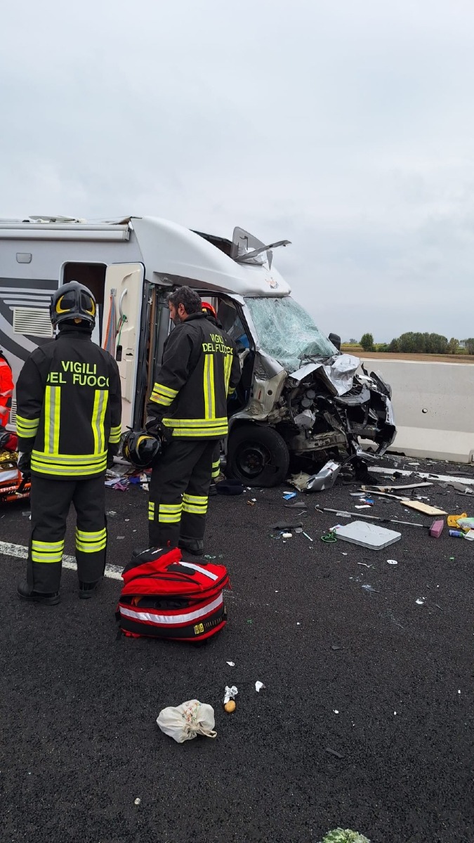Il veicolo si sarebbe intraversato sulla carreggiata, urtando violentemente il camper che viaggiava nella stessa direzione.