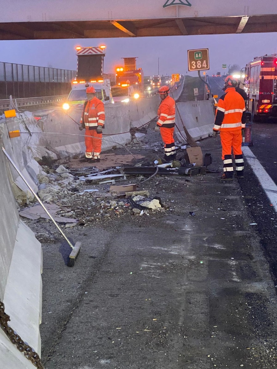 A causa dell’intensità dell’impatto, risulta indispensabile lo spostamento e la rimozione di circa dieci New Jersey, che hanno riportato danni significativi. Le operazioni richiederanno tempi prolungati, con possibili ulteriori disagi alla viabilità.