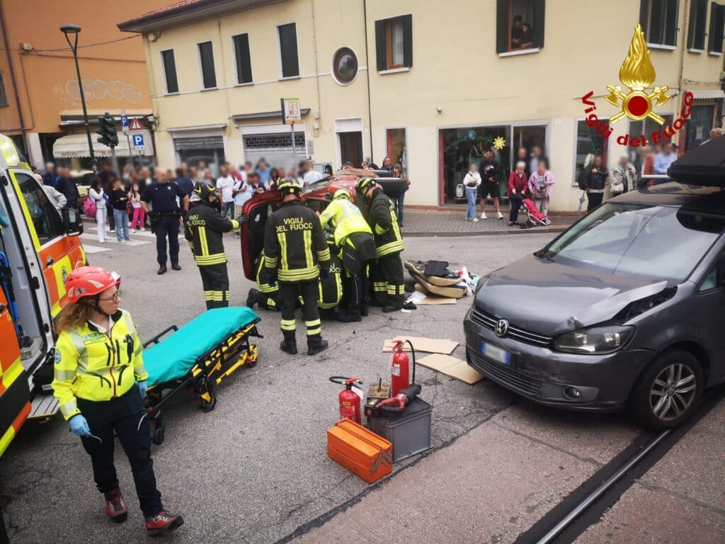MESTRE - Nel pomeriggio di martedì 20 giugno, poco dopo le ore 16:00, un grave incidente si è verificato in via Bissuola all’incrocio con Ca’ Rossa, nel comune di Mestre. Lo scontro ha coinvolto due automobili, una delle quali si è ribaltata finendo su un fianco. Una donna conducente è rimasta incastrata all’interno del veicolo e ha riportato ferite.