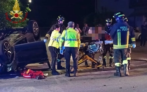 Auto perde il controllo e si ribalta nella notte: quattro feriti, grave il conducente