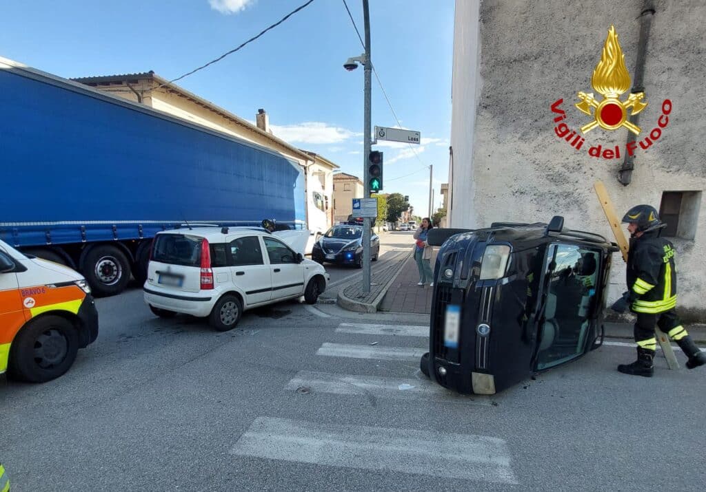 Incidente a Tezze sul Brenta: due auto coinvolte, una ribaltata. Due donne ferite, trasportate in ospedale.