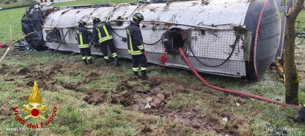 VESTEVANOVA (VR) – Un'autocisterna carica di latte ha subito un grave incidente oggi pomeriggio. La sala operativa dei Vigili del fuoco ha ricevuto una segnalazione che ha subito mobilitato il distaccamento di Caldiero. L’autocisterna è uscita autonomamente dalla strada, ribaltandosi sulla SP 17, una delle principali arterie che collega Vestevanova.