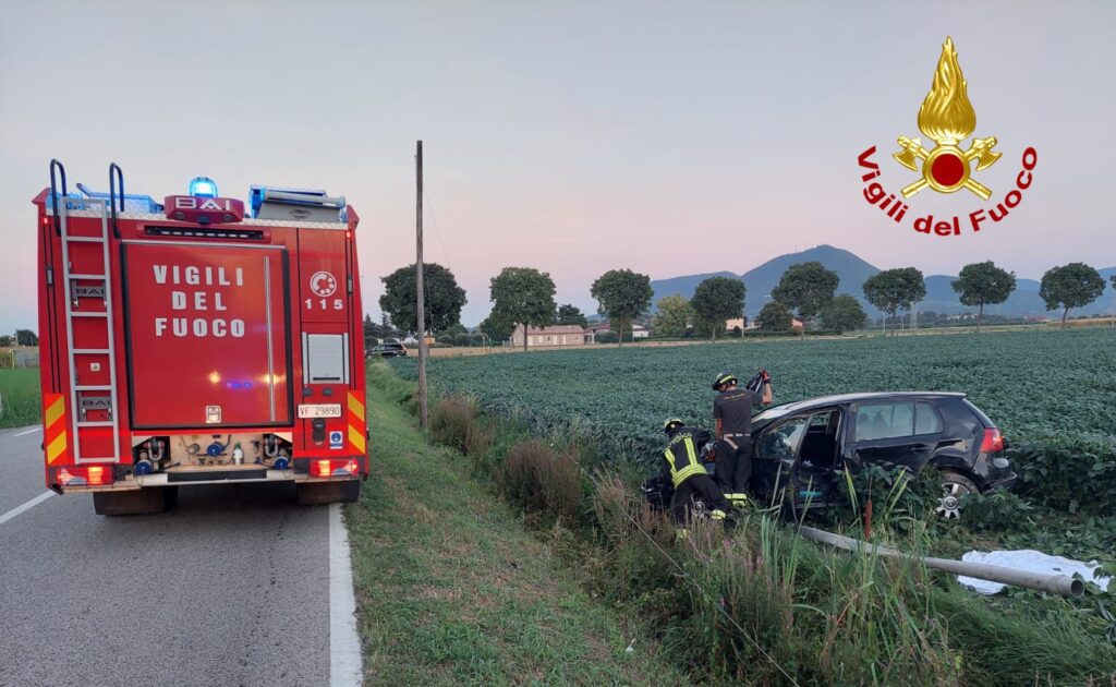 BARBARANO MOSSANO (VICENZA). Alle 19:30 di venerdì, i vigili del fuoco sono intervenuti lungo SP 8 in Via Rampezzana a Barbarano Mossano per un’auto finita fuoristrada in un campo agricolo dopo aver anche abbattuto un palo del telefono: ferito il conducente.