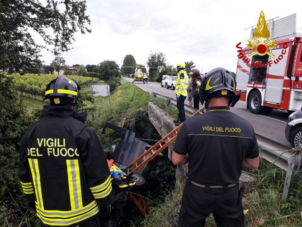 I pompieri arrivati da Lonigo, hanno messo in sicurezza il furgone ed estratto il conducente, rimasto incastrato, che è stato stabilizzato dal personale sanitario del Suem per poi essere elitrasportato in ospedale.