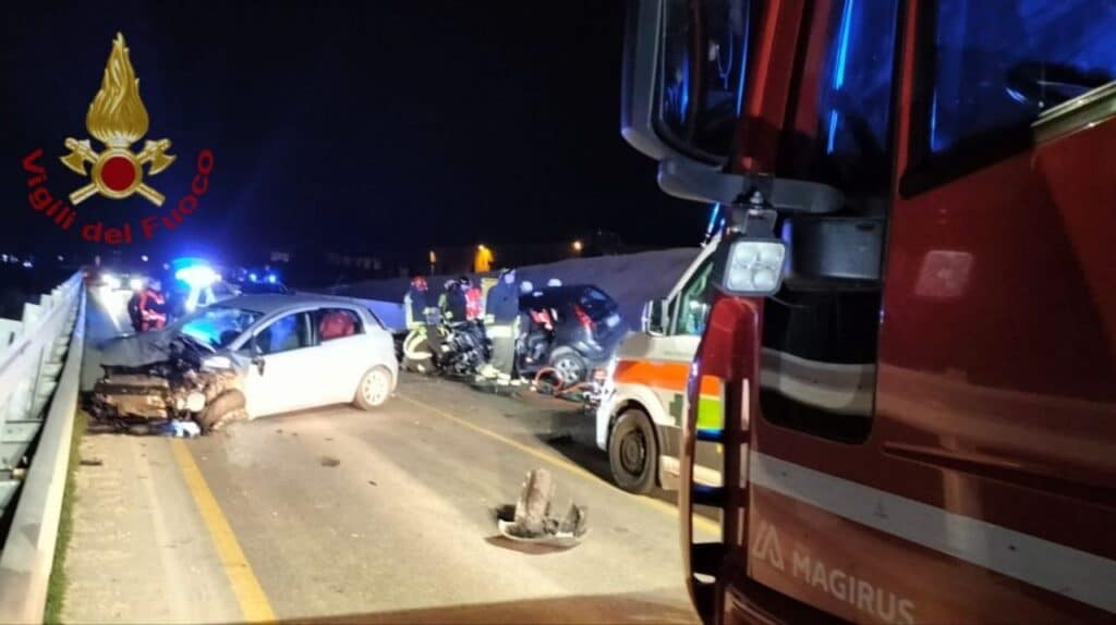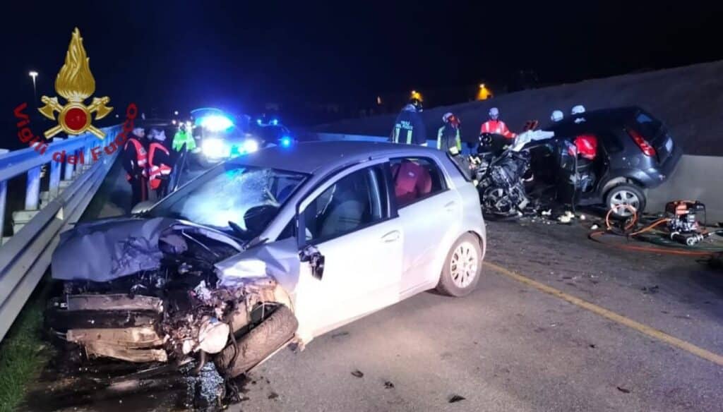 Tremendo scontro frontale nella notte tra due auto: quattro feriti, due persone incastrate