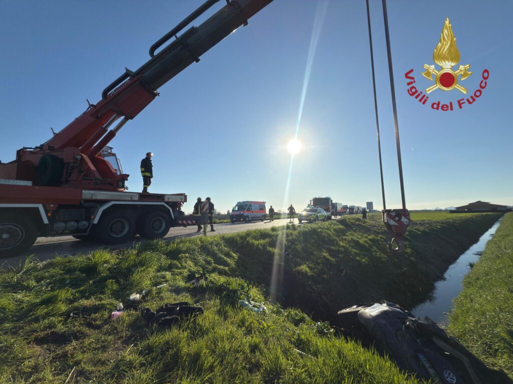 All'arrivo dei soccorritori, l'auto coinvolta nell'incidente era finita in un fossato, e all'interno vi erano quattro passeggeri. Due uomini sono riusciti a uscire autonomamente dal veicolo, pur riportando ferite lievi. Purtroppo, le altre due persone sono state sbalzate fuori dal mezzo durante la fuoriuscita, finendo nel campo adiacente. Il pronto intervento dei sanitari del Suem è stato determinante: uno dei feriti è stato stabilizzato sul posto e trasferito d'urgenza in ospedale tramite elicottero, mentre per l'altro, nonostante i tentativi di rianimazione, non c'è stato nulla da fare.