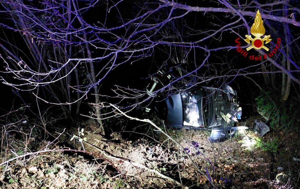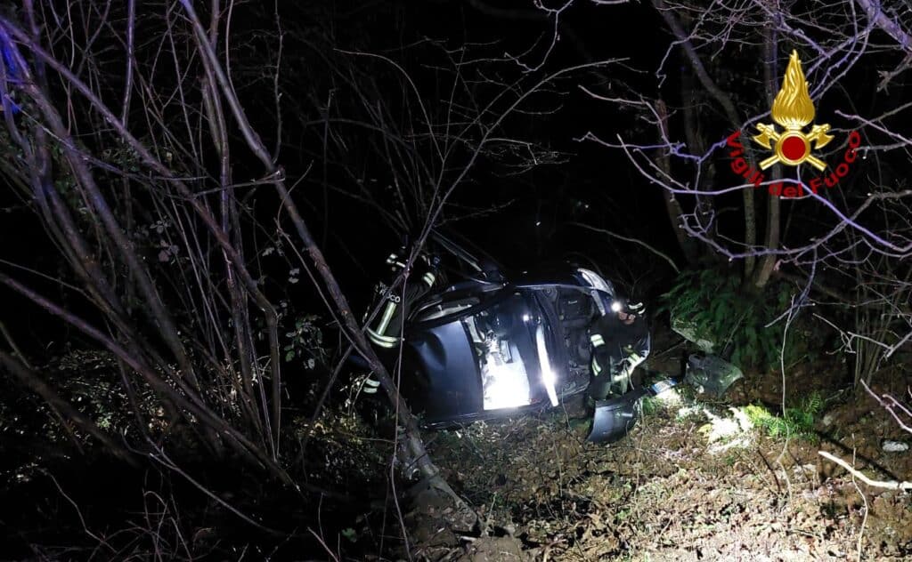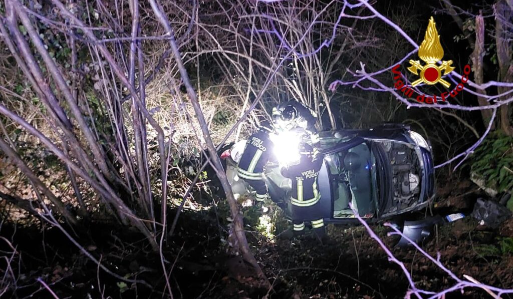 Auto finisce fuori strada e si ribalta in un dirupo: ferito un bambino, estratto dall'abitacolo