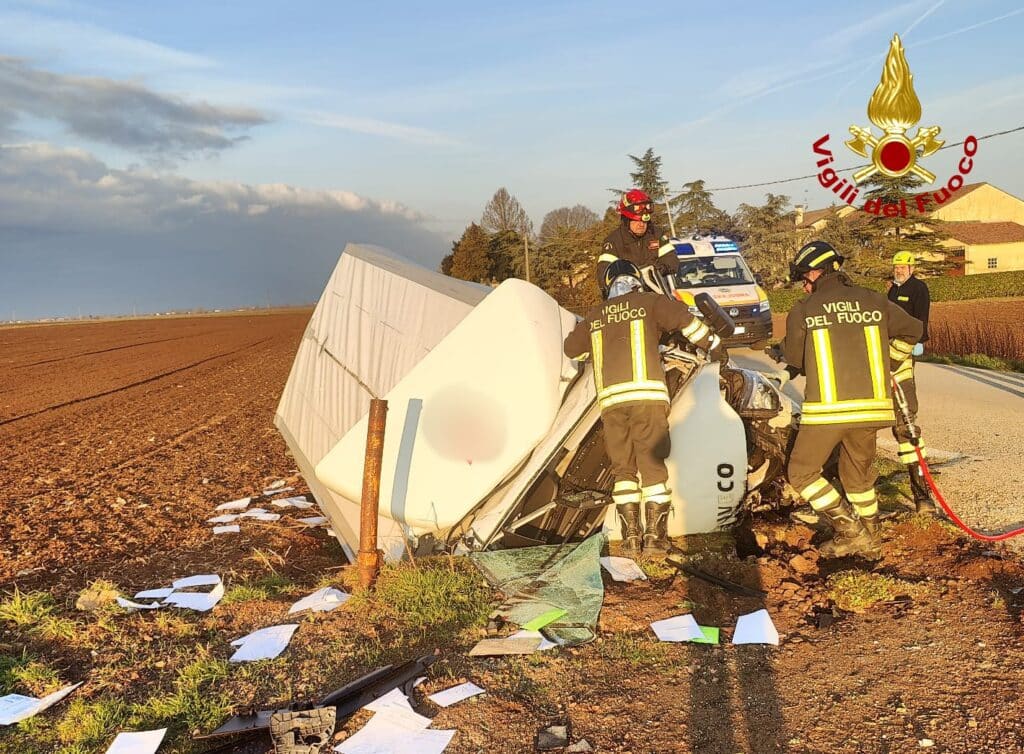 Incidente a Pojana Maggiore: un furgone finisce nel canale di scolo, gravemente ferito l'autista. Intervento dei Vigili del Fuoco e trasporto in ospedale.