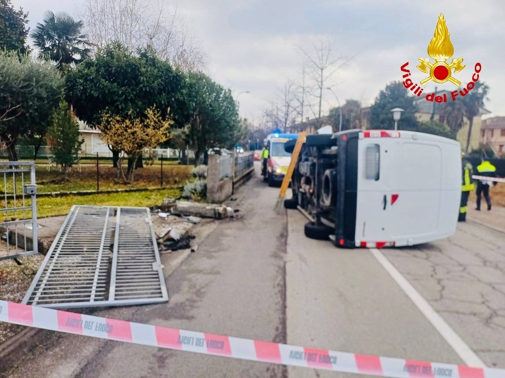 Il conducente ha perso il controllo del furgone, che ha sbandato ed è andato a schiantarsi contro una recinzione, sfondandola, per poi finire ribaltato su un fianco.