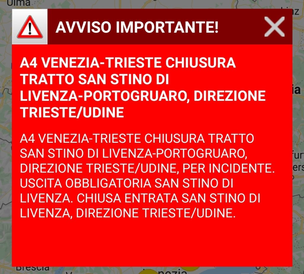 Istituita quindi l'uscita obbligatoria di San Stino per chi proviene da Venezia e divieto di ingresso allo stesso casello per chi è diretto a Trieste.