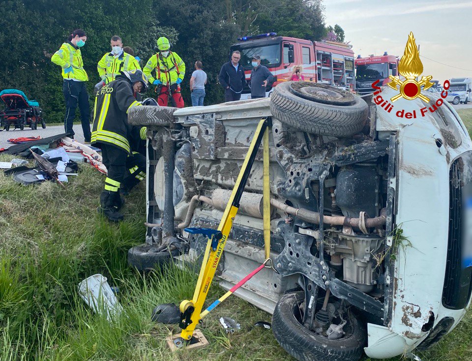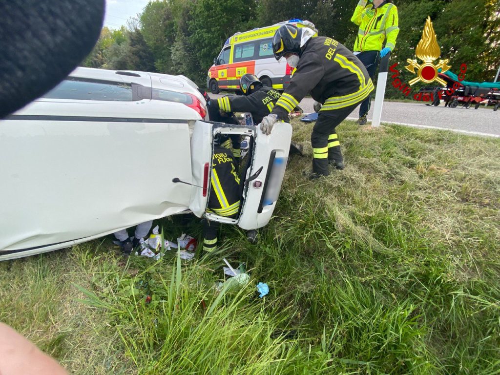 PORTOGRUARO. Alle 18:40, di lunedì, i vigili del fuoco sono intervenuti lungo la SP 70 in località Brussa a Portogruaro per un’auto finita fuoristrada su un fianco, dopo la perdita di controllo del conducente rimasto ferito.