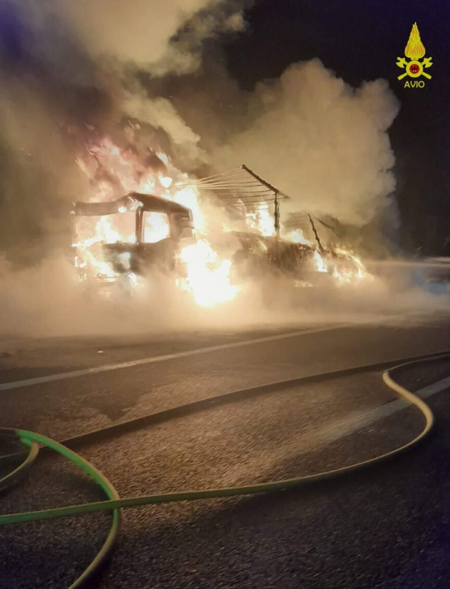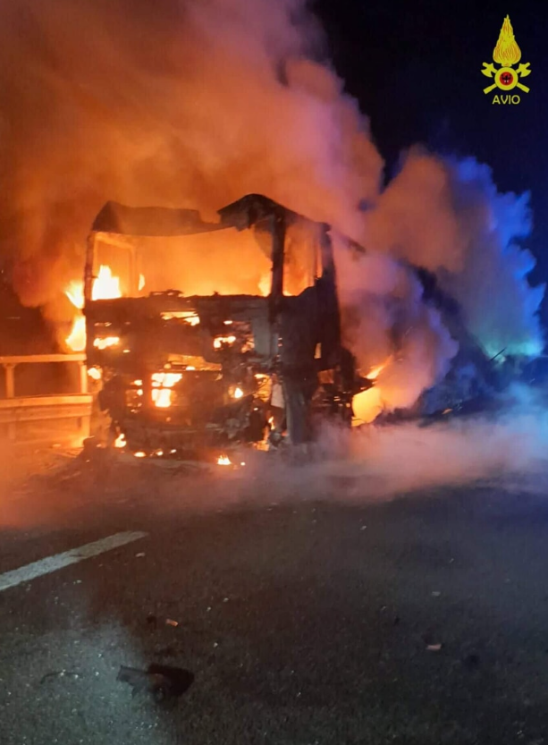 Per cause ancora da accertare, un furgone con a bordo due persone, un uomo e una donna, ha tamponato un autoarticolato fermo in una piazzola di sosta e si è subito incendiato. L’impatto ha coinvolto anche il mezzo pesante, carico di rotoli di carta e cartone, parzialmente avvolto dalle fiamme.