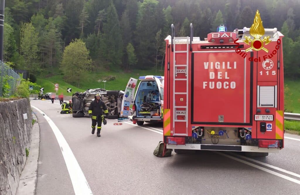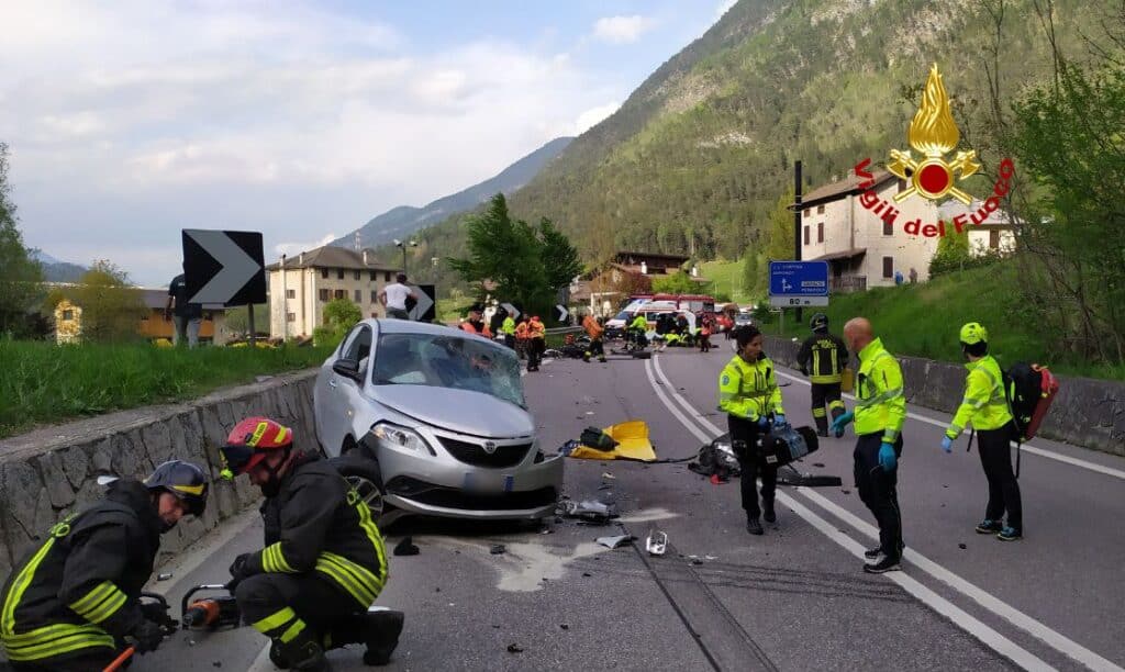 PERAROLO DI CADORE (BELLUNO). Da poco prima delle 17:30 di sabato 3 maggio, i vigili del fuoco sono impegnati lungo la SS 51, nei pressi della galleria di Caralte a Perarolo di Cadore, a seguito di un grave incidente stradale che ha coinvolto tre automobili e una moto. Pesante il bilancio: il centauro è deceduto e altre cinque persone sono rimaste ferite.