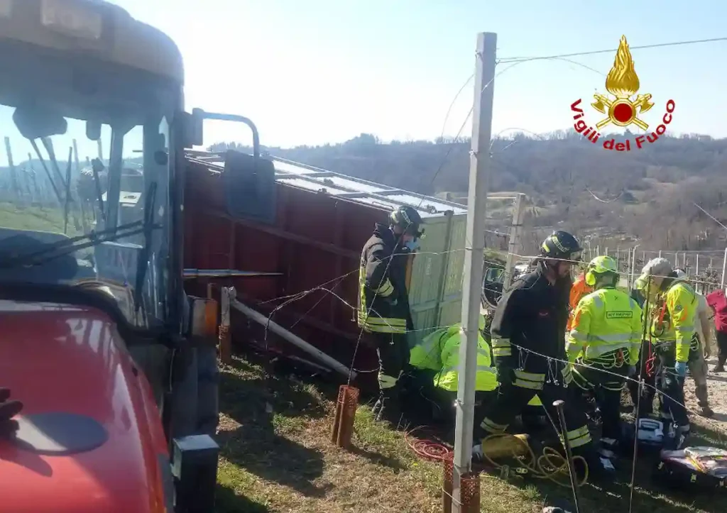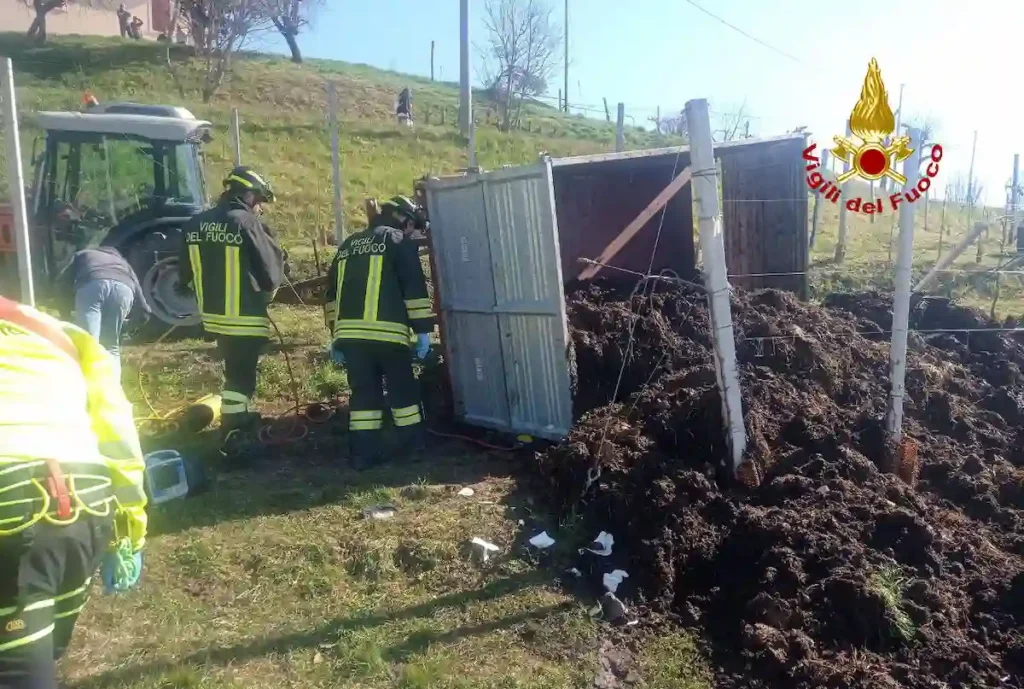 SAN PIETRO DI FELETTO (TREVISO)- Poco prima delle 14:00, un grave incidente si è verificato in un vigneto di via Belvedere a San Pietro di Feletto, dove un operaio è rimasto incastrato sotto un rimorchio agricolo carico di letame.