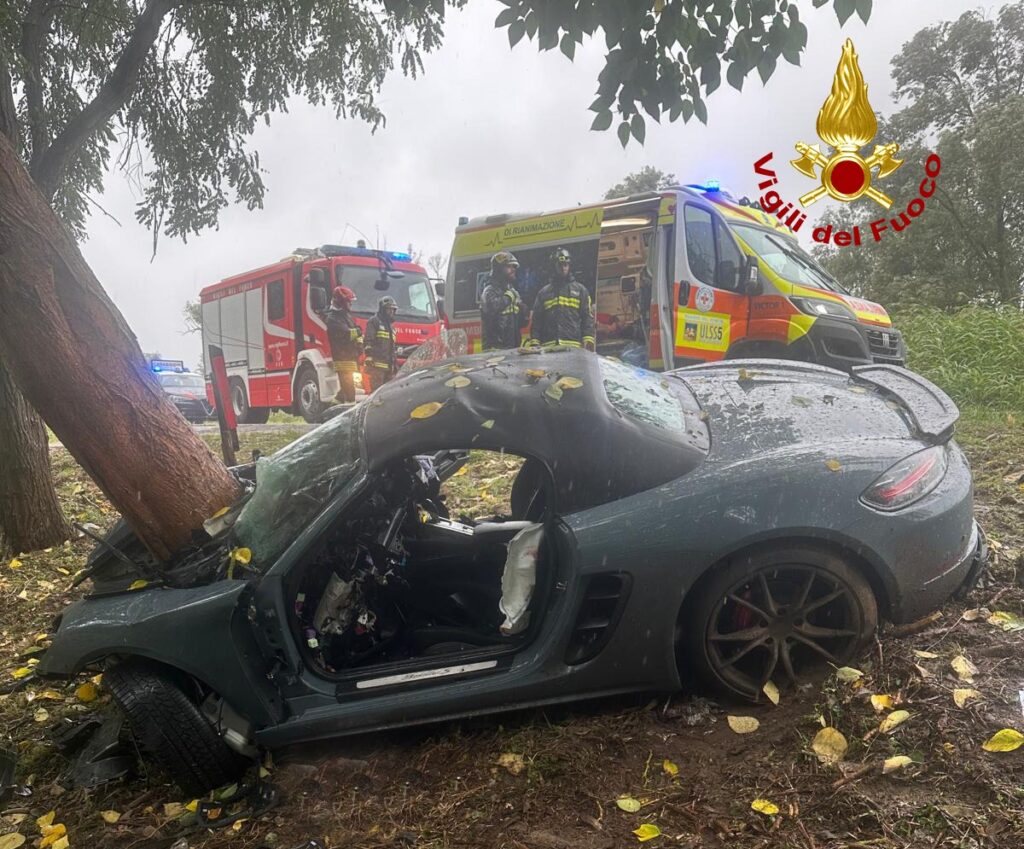 Piomba con la Porsche 718 Boxster contro un albero: gravissimo un giovane