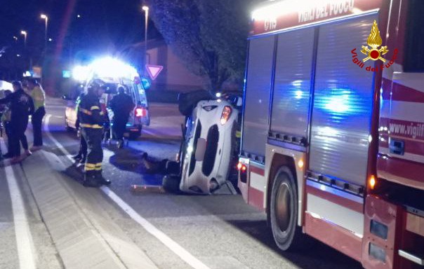 L'auto sbanda e si ribalta, due ragazze estratte dai pompieri attraverso il lunotto posteriore