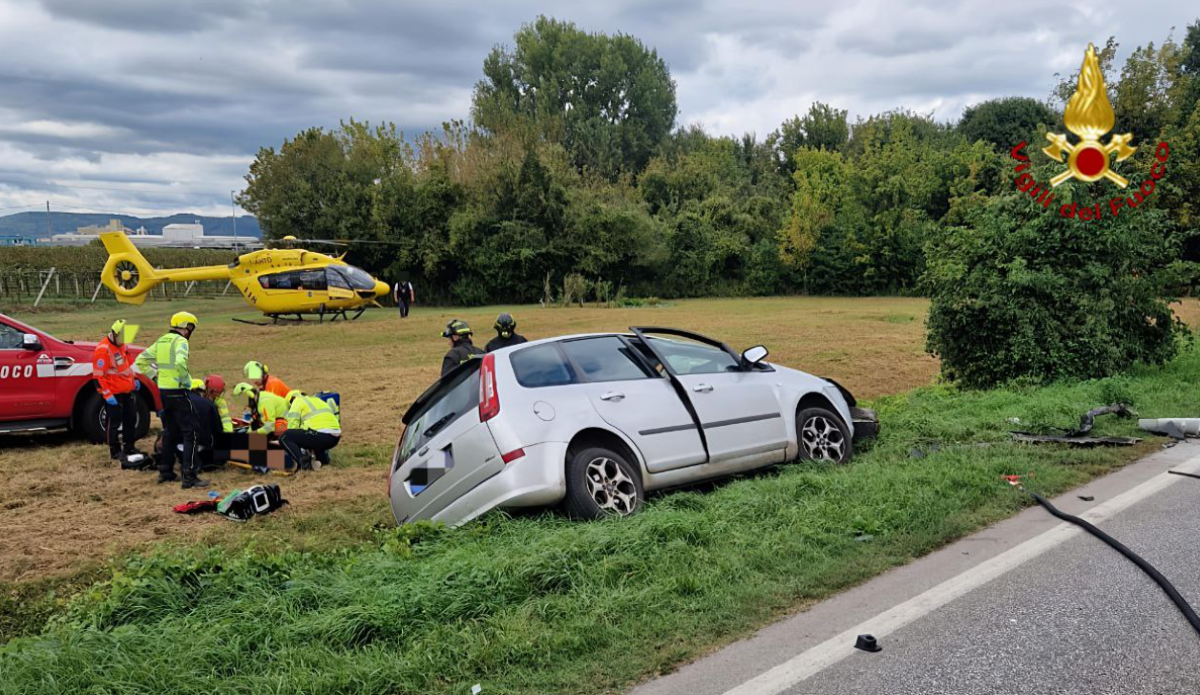 Lonigo, grave incidente sulla SP17: tre mezzi coinvolti, un ferito elitrasportato al San Bortolo di Vicenza.