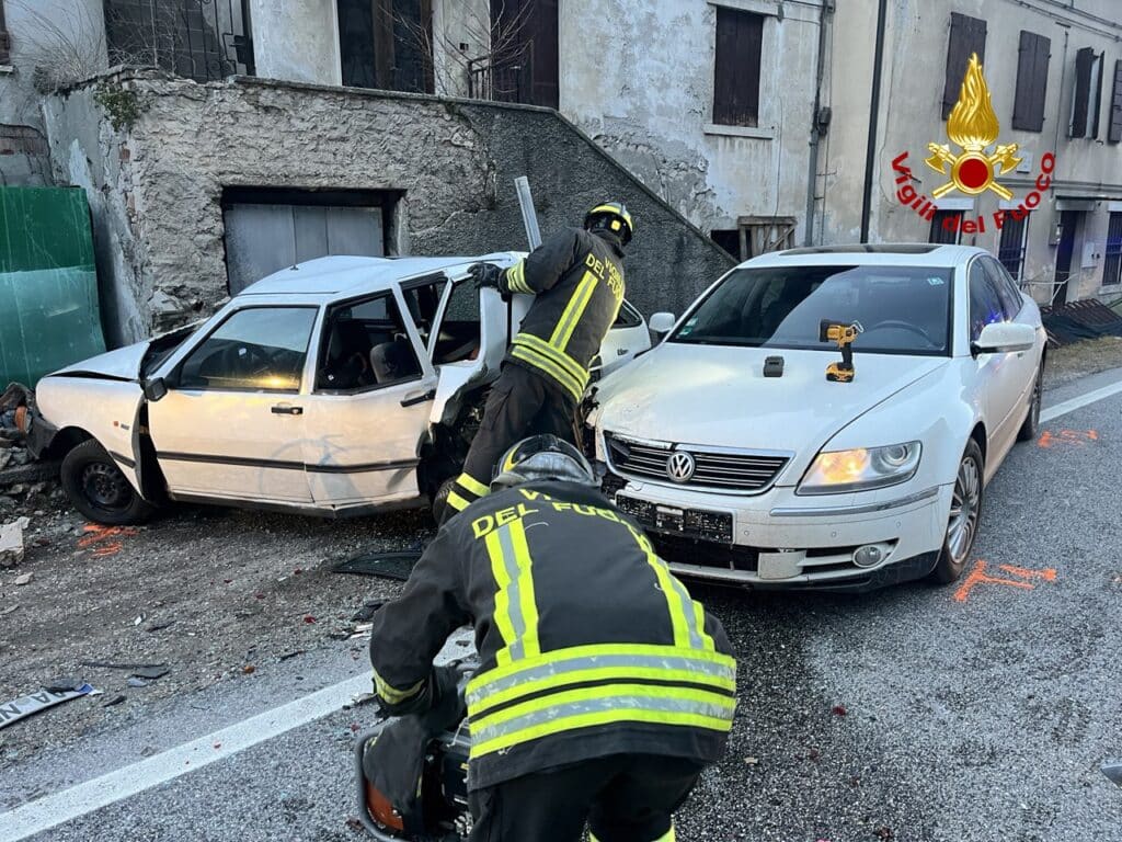 Incidente a Valbrenta: un’auto tampona una Fiat Uno parcheggiata, causando la perdita di gas metano. Nessun ferito, operazioni di soccorso durano due ore.