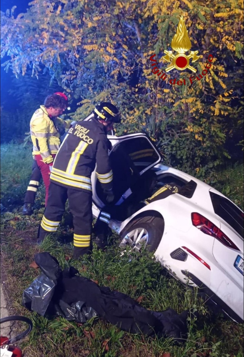 Auto fuori strada a Volpago del Montello, ferito un giovane del 2001 soccorso dai Vigili del Fuoco e dal SUEM 118.