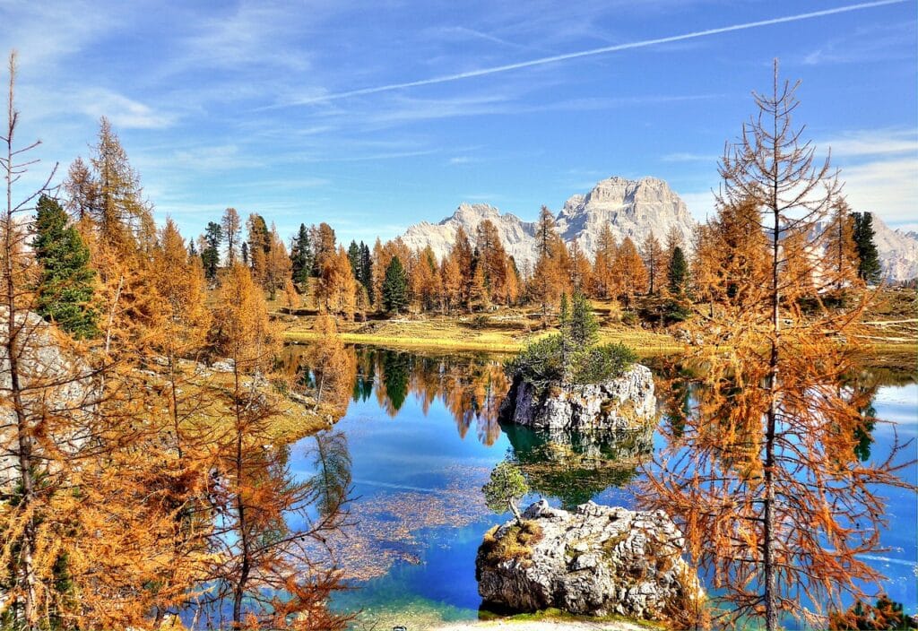 Il Lago di Federa, situato a più di 2000 metri di altitudine, è uno dei laghi più suggestivi delle Dolomiti Ampezzane. La camminata per raggiungerlo è impegnativa, ma ripaga con paesaggi unici, caratterizzati da pascoli d’alta quota e boschetti di larici. Il lago è circondato da sentieri che portano a cime più alte, per escursioni più impegnative, ma anche per chi desidera fare una pausa in un rifugio alpino tradizionale.