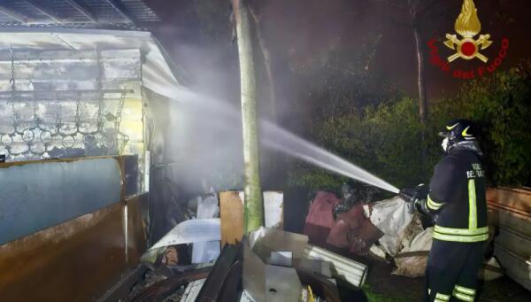 Ricovero attrezzi in fiamme nella notte: i due cani segnalano l'incendio ai padroni
