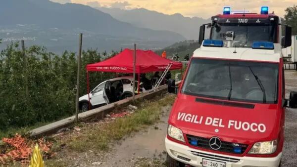Auto sbanda in curva, supera il muretto e termina tra i meleti: ferite due donne e una bambina