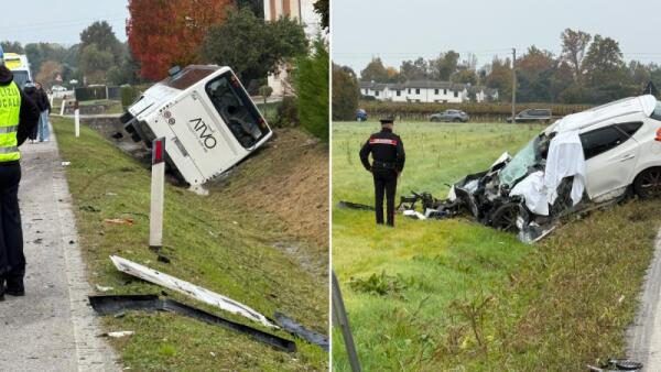 Tragico incidente a Piavon di Oderzo: scontro tra autobus con 50 studenti e auto, un morto