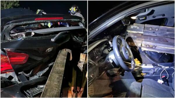 Esce di strada e centra il guardrail che penetra nell'auto: due feriti