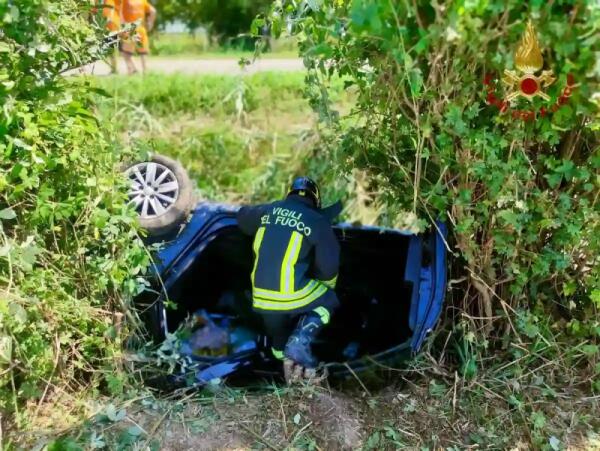 Caorle, auto piomba nel fossato: mamma e figlio feriti, incastrati nel veicolo