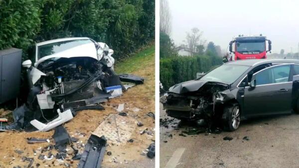 Scontro frontale tra due auto, una finisce nel fossato: due feriti