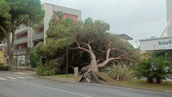 Caduta di un pino a Bibione, allerta in Corso del Sole
