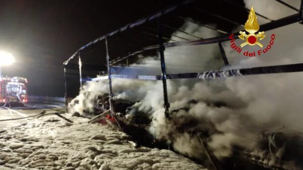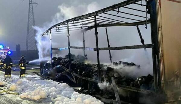 Mezzo pesante in fiamme sull'A4