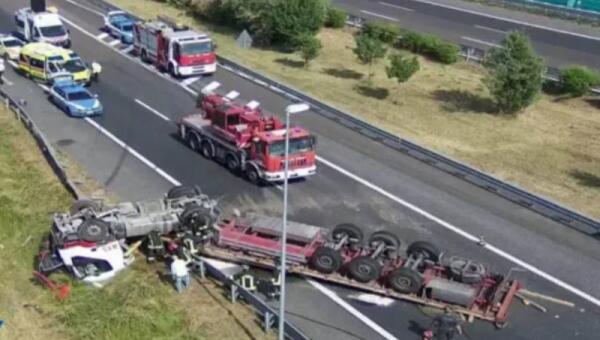 Tir con bobina d'acciaio si ribalta lungo la Tangenziale: un ferito e disagi