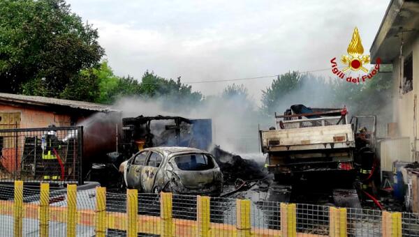 Incendio a Spinea, bruciano un'auto, un furgone e degli pneumatici