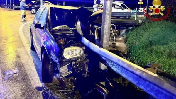 Centra la cuspide del guardrail che penetra nell'auto: grave il conducente