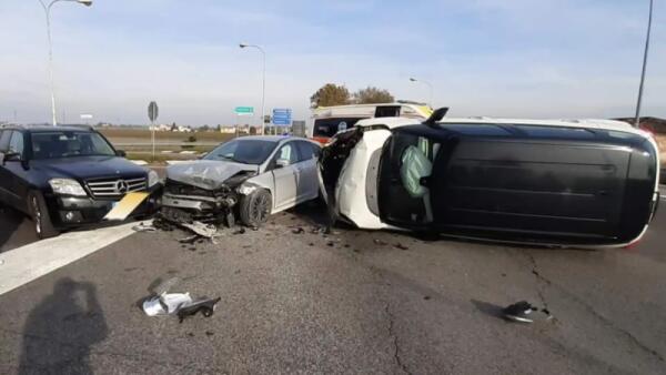 Concordia Sagittaria. Pauroso scontro tra 3 auto, una finisce rovesciata su un fianco