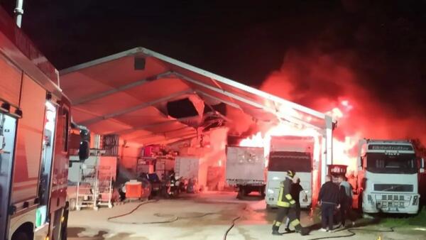Fuoco nel deposito dei mezzi del Luna Park: distrutti 2 camion, un rimorchio e la copertura