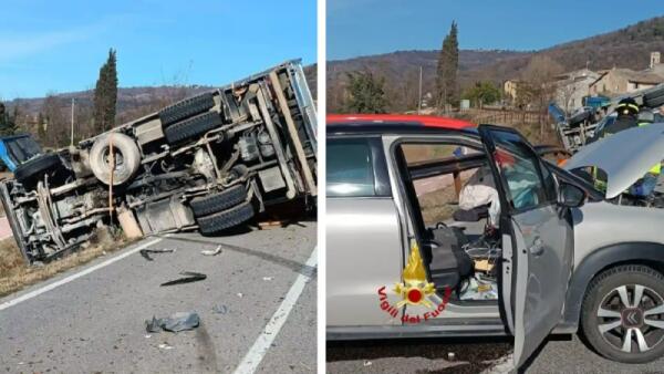 Incidente sulla SP 9, tre mezzi coinvolti tra cui un camion: 2 persone ferite
