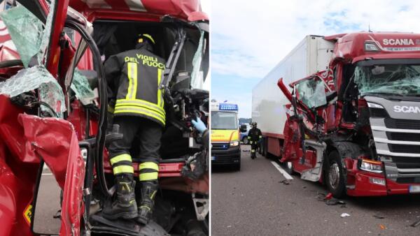 Violento scontro tra due camion sull'A4: traffico bloccato e disagi. Foto | Video