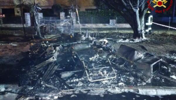 Camper a fuoco nella notte: veicolo distrutto dalle fiamme