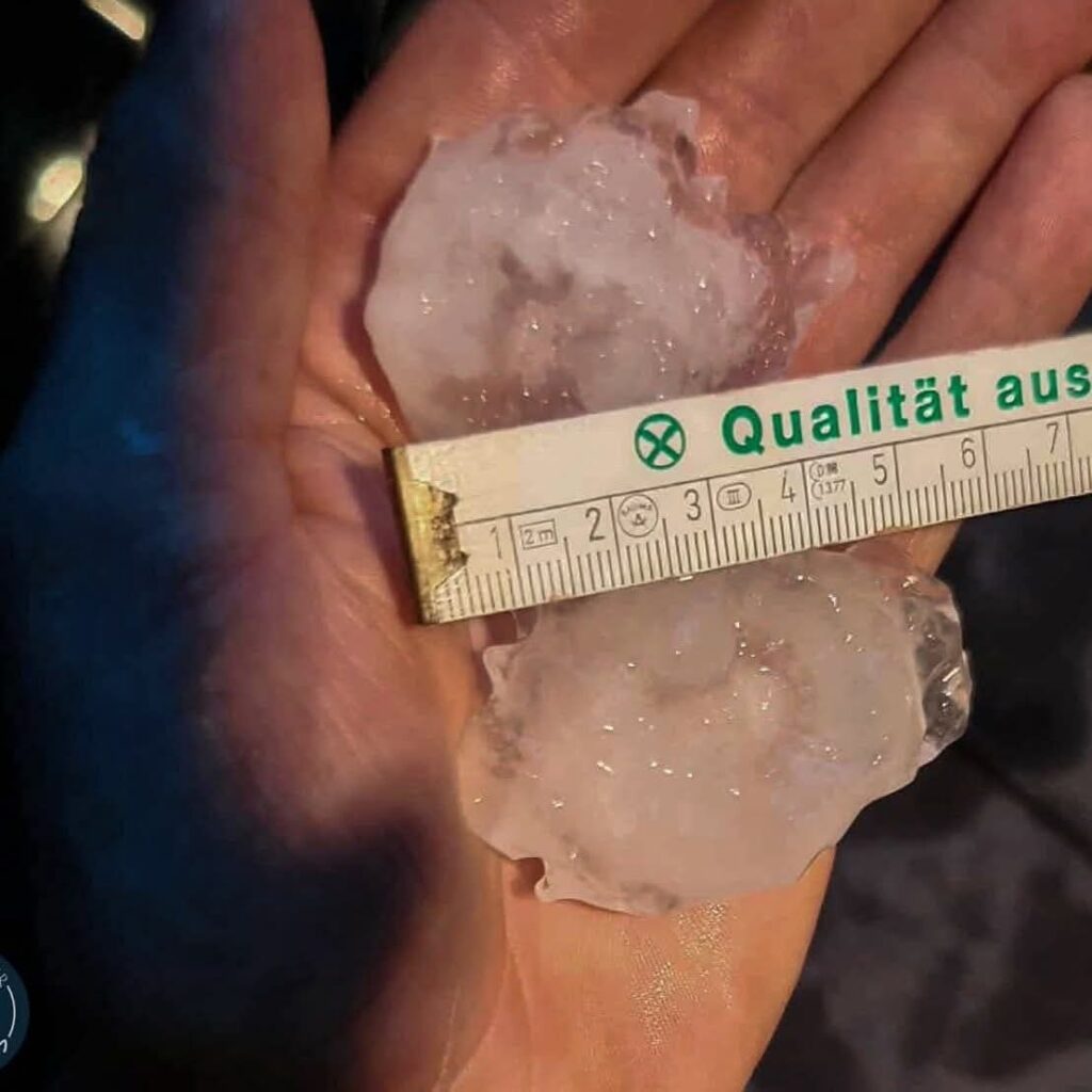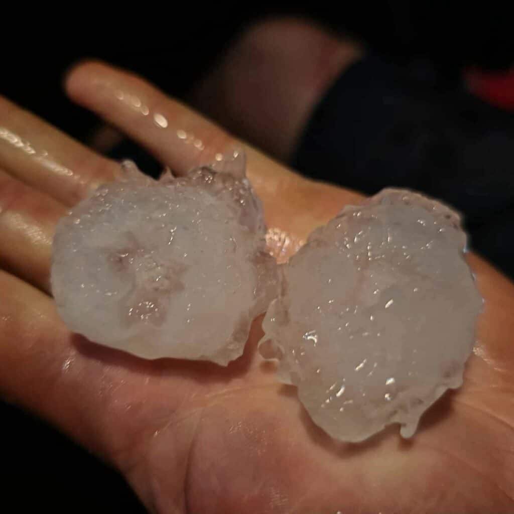 La perturbazione è stata accompagnata anche da forti raffiche di vento e da chicchi di grandine di medie dimensioni, alcuni dei quali hanno raggiunto i 6 centimetri di diametro, provocando danni a tetti, auto e coltivazioni.
