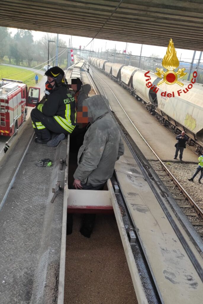 Il macchinista di un treno, dopo essersi fermato per una rapida sosta alle 15, ha sentito dei rumori sospetti da un vagone merci cisterna carico di mangimi provenienti dall'est Europa. Ispezionata la fonte dei rumori ha scoperto due uomini stremati all'interno. Il treno proveniva dalla Serbia e, al momento del controllo, si trovava quasi a Portogruaro. Sono intervenuti i vigili del fuoco che li hanno estratti ed ora stanno esaminando gli altri vagoni per escludere la presenza di ulteriori persone.