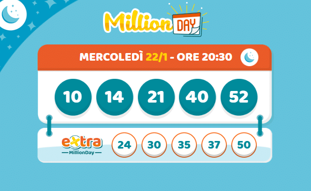 Scopri i numeri vincenti del Million Day e Million Day Extra del 22 gennaio 2025. Partecipa per avere la possibilità di vincere milioni!