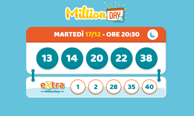 17 dicembre 2024 – Oggi, martedì 17 dicembre, è una data molto attesa per tutti gli appassionati del Million Day e del Million Day Extra, due dei giochi a premi più amati in Italia. Alle ore 20:30 ver...