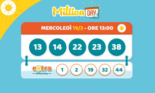 Scopri i numeri vincenti di oggi, 19 marzo 2025, per il Million Day e il Million Day Extra. Estrazione ore 13:00 e 20:30, verifica se hai vinto!