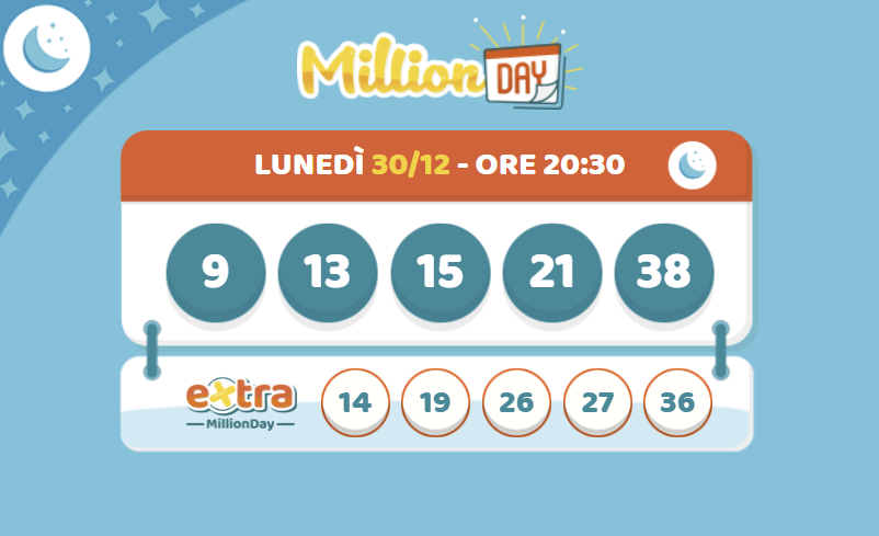 Il 30 dicembre è un giorno che non passerà inosservato per gli appassionati di Million Day e Million Day Extra. I numeri estratti alle 13:00 potrebbero non aver portato il milione di euro a nessuno, ma l’estrazione delle 20:30 potrebbe essere la svolta. I giocatori che non sono riusciti a vincere nella prima estrazione hanno una nuova occasione per farlo, e l'attesa per i numeri serali è sempre carica di emozione.