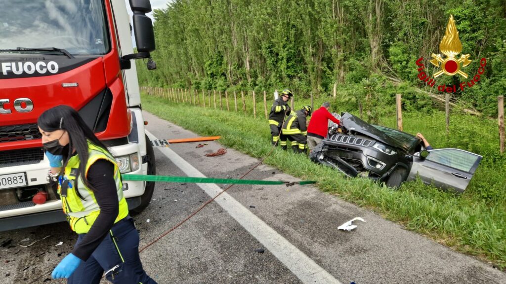 Mira. Tremendo schianto frontale lungo la Romea: 4 feriti