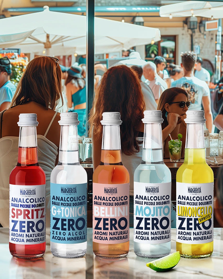 Mojito Zero, Spritz Zero, Bellini Zero, G+Tonica Zero, Limoncello Zero Spritz sono i cinque gustosi aperitivi analcolici realizzati solo con l’acqua minerale delle Piccole Dolomiti e selezionati aromi naturali, senza coloranti artificiali. I delicati aromi naturali sono frutto della meticolosa selezione effettuata dal laboratorio dell’azienda. Attraverso questi aperitivi no-alcool l’azienda veneta promuove forme di socialità responsabile, la possibilità cioè di divertirsi e di socializzare bevendo analcolici. Nelle originali bottiglie in vetro da 27,5cl gli aperitivi Fonte Margherita 1845 rappresentano anche una scelta di sostenibilità ambientale visto che il vetro è un materiale reversibile e riciclabile.
